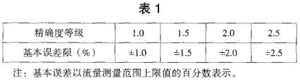 一種是采用國家行業(yè)標準JB/T6844- 1993的定義方式。在這種方式中規(guī)定浮子流量計的基本誤差如表1所示。